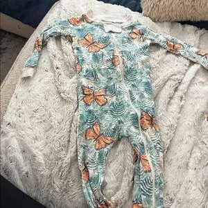 Adorable one piece with butterfly print. Soft and comfortable fabric. Easy zip closure.