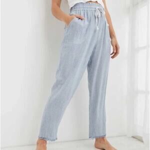 Aerie Real Good Gauze High Waisted Pant Size Small Pinstripe Blue & White