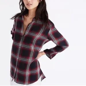 Madewell Flannel Classic Ex-Boyfriend Shirt in Rollins Red Plaid Size Small