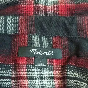 Madewell's signature button-up shirt. Forever perfect in yarn-dyed plaid flannel. Regular fit. Shirttail hem. Color Red/Black. Size Small.