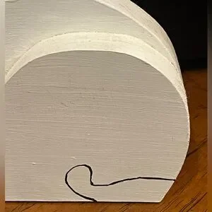 Charming white wooden cat decor with pink accents. Perfect for adding a playful touch to any space.