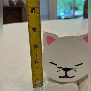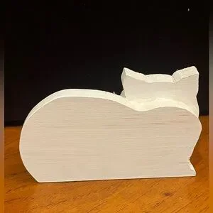 Vintage rustic handmade wooden White sitting Cat Decor. GUC!