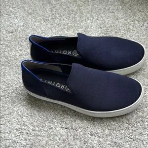 Stylish navy blue slip-on sneakers by Rothy's. Comfortable and versatile design.