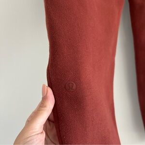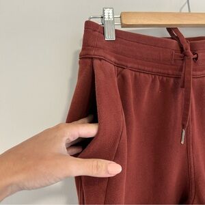 Lululemon scuba high rise joggers in a deep brown/maroon color! In the color mulled wine