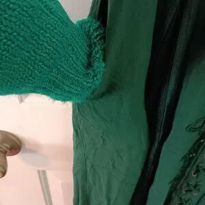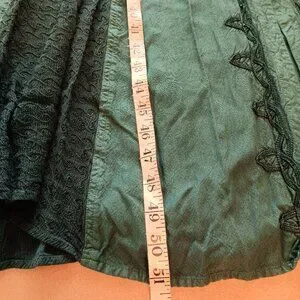 Get your Celtic on! Butter-soft rayon with textured gussets for extra flare in the skirt. Matching cording is stitched down the front in a Celtic knot pattern on either side of decorative lacing. I believe this is the "Green Jade" color.