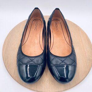 Vionic Desiree Shoes Womens 9.5 Black Leather Orthotic Quilted Ballet Flat Cap