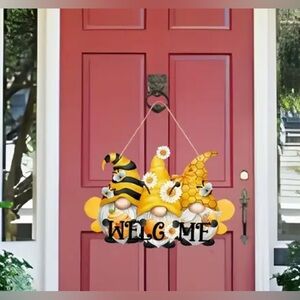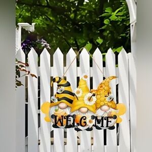 Brighten your home with this charming yellow and black gnome welcome sign. Perfect for adding a whimsical touch to your wall decor.
