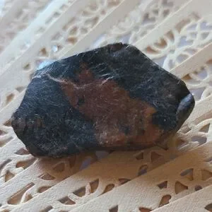 Distinctive black and brown stone with natural patterns. Perfect for collectors or crafting.