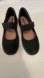 Stylish black leather Mary Jane flats with a comfortable Velcro strap. Rubber soles. Cushioned. Perfect for casual wear.