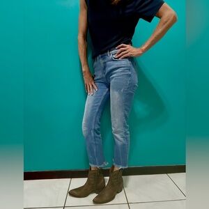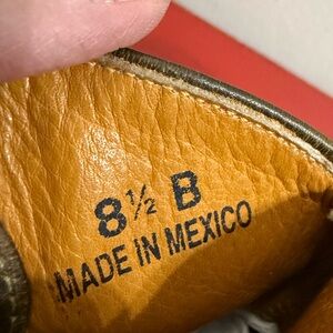 These are such a cool and unique color. The left boot has a pattern on the leather that could either be part of its antiqued, rustic look or it’s where the previous owner rubbed something with their boot. Either way it looks cool like it might be part of the style. Either way it’s priced accordingly!