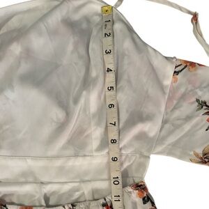 SIZE SMALL (Measurements of chest, waist, inseam, & length from inseam to floor in pictures, roughly measured due to back band having a ton of stretch and adjustable back tie.)