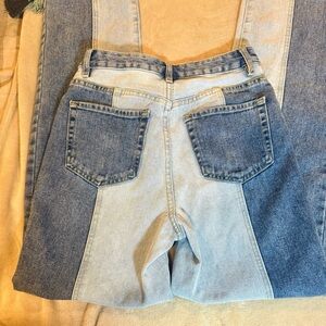 Pac Sun two-tone 90s Boyfriend vintage-inspired jeans. High rise & baggy through the leg. There’s a small distressed hole (less than dime size) on the back between waistband and pocket. The jeans are in otherwise used great condition. #90sinspired #highrise #baggyleg #90s #twotone