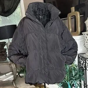 Stylish black puffer jacket. Warm and comfortable. Perfect for cold weather.