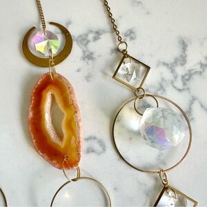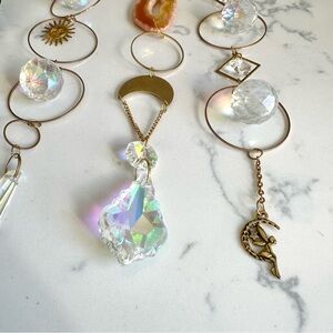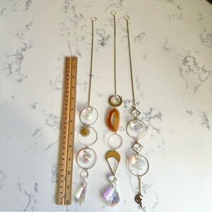 3 Pc Acrylic Crystal Sun Catcher Prism Pendant Garden Decor Golden Fairy Moon