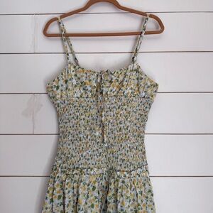 Effortlessly femme, this midi dress is featured in a soft cotton fabrication and sleeveless silhouette with flattering drop-waist detailing and a smocked bodice. **Fit:** Fit-and-flare style, midi-length **Features:** Soft cotton fabrication, subtle scoop neckline, tie at bust, smocked bodice, drop-waist detailing, thin adjustable shoulder straps **Why We ❤ It:** Perfect paired with a flat or your favorite strappy sandals, this midi is made for everyday wear. Lavender Daze Dress in Green Combo, Size: S