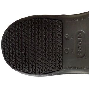 Crocs Bistro Clog. Unisex. Color Black. Size: Men’s 10. Women’s 12. Non slid non marking bottom. Thicker metatarsal and enclosed toe. No box. Never worn. Pet free smoke free environment.