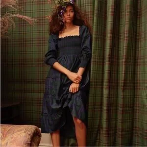 Hill House Naomi Nap Dress Long Sleeve Blackwatch Tartan Plaid size XS
