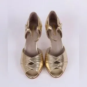 Elegant Leather Evening Shoes Spanish Heels Size 7W Gold 1920โs