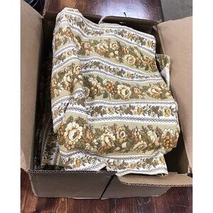 Vintage Mid Century Flower Material Lot. Lots includes 12 panels. 9 panels and 3 with holes see pictures, I decided to include the 3 panels with holes because there is still a lot of usable fabric minus the holes. I picked these up at a estate sale all together in a box, box looked to be curtains at first glance but as I was unpacking they look like someone had modified them into panels as I saw no way to insert a rod. The panels are at least 126 inches long some are longer than that measurement width is 19 1/4. Lot also includes curtains tie backs a total of 22. Super cool pattern and tons of fabric
