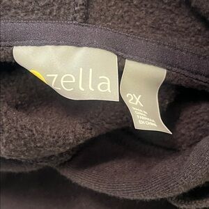 Zella Cara Hoodie in Black. Size: 2X. A cozy everyday hoodie crafted from a supersoft cotton-blend fleece with a slim, flattering fit. Perfect for lounging, errands, or casual layering. Features: drawstring hood, long sleeves with ribbed cuffs, kangaroo pocket, 64% cotton, 36% polyester. Machine wash, tumble dry. Excellent pre-loved condition.
