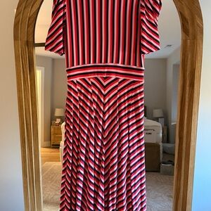 Boden Red and Blue Striped Midi Dress