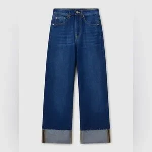 LAST CALL Benetton Dark Blue Wide Leg Jeans, Size 28, Shipped from Italy, CUFF
