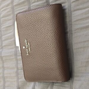 Elegant brown leather wallet by Kate Spade. Features a textured finish.