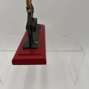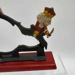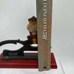 The product is a vintage cast iron Christmas soldier nutcracker imported from Midwest. It features a solid rectangular shape, made of wood and cast iron. This unique nutcracker is designed specifically for Christmas and is perfect for collectors or those looking to add a vintage touch to their holiday decor. The detailed design of the soldier nutcracker adds a festive and whimsical element to any Christmas celebration.