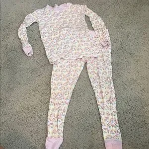 Cozy and colorful kids pajamas featuring a delightful rainbow pattern. Perfect for bedtime fun and comfort. Good condition.