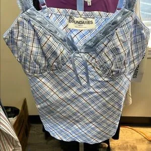 No Boundaries Light Blue Plaid Camisole with Lace