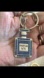 Pretty keychain with blue rhinestones and Parfum No. 5 design. Features a silver clasp.