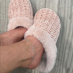 Pink fuzzy slippers feet foot gently worn used sz 6 ladies my favorite loved