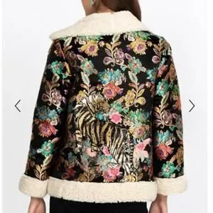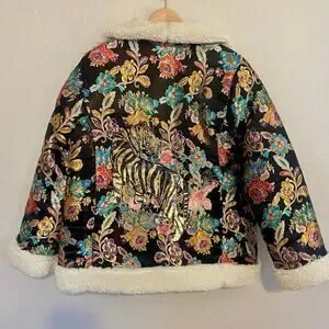 Johnny Was Sofie Jacquard Coat Womens Size Medium Embroidered Sequin Asian Tiger