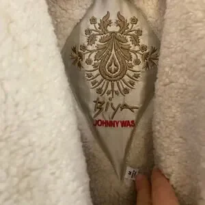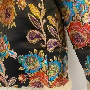 Biya Johnny Was Sofia Coat is a beautiful statement piece in very good used condition. The embroidery has some small pulls in a few spots, primarily around the pockets as seen in the last three photos. Comes from smoke-free home.