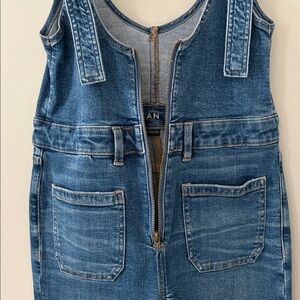 American Eagle Stretch Flare Jean Denim Overalls Front Zip Retro Vibe Size 8