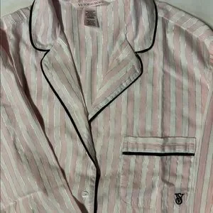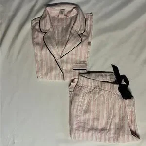 Victoria's Secret Pink and White Striped Pajama Set with Silver