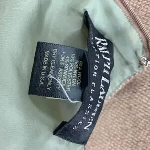 RALPH LAUREN 'Black Label' dress comes in a beige wool blend featuring an a-line style, sleeveless, and a back zipper closure. Made in USA.