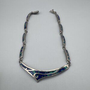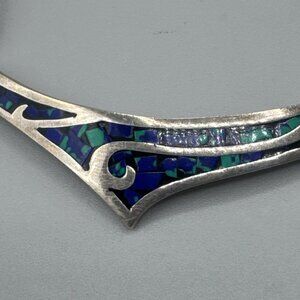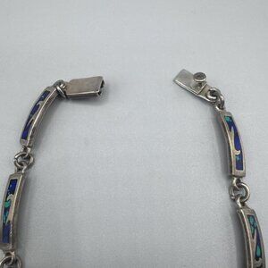 925 Vintage Sterling Silver Turquoise Collar Choker TA-217 Mexico Necklace 16"