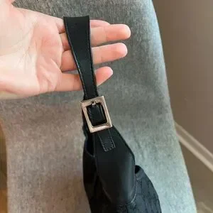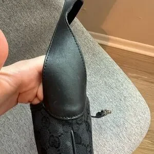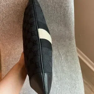 Chic shoulder bag with a black and cream design. Features signature Gucci pattern. Perfect for stylish outings.