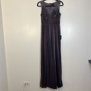 Elegant mauve maxi dress. Sleeveless with a deep V-neck. Perfect for formal occasions.