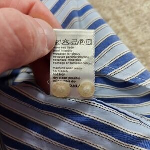 Vintage Lacoste Shirt Men 44 (XL) Vertical Striped Button Up Alligator Logo Blue