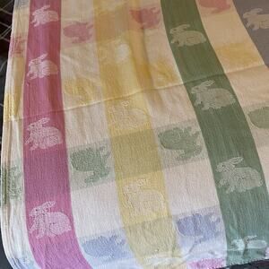 Vintage 100% Cotton ThrowBlanket Bunnies Rabbits Print 63x47”Multicolor Cottage