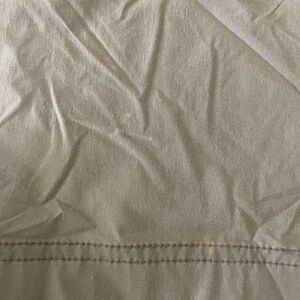Great condition EXCEPT please note: there are some very small discolorations at the bottom one of the legs. You can’t see it very well and not at all if they are rolled up. See photos. The photos are of the same place, just different lighting.