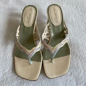 NEW Via Spiga Pastel Colors Kitten Heels Leather Sandals | 7