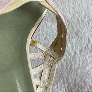 Colors: cream/ white sandals with pastel blue, yellow and pink.