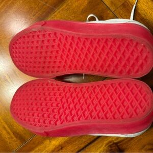VANS Old Skool Stacked sneakers: white suede lace up with hot pink soles. Worn once, very clean, like new. Size 8.5 women’s/size 7.0 men’s.