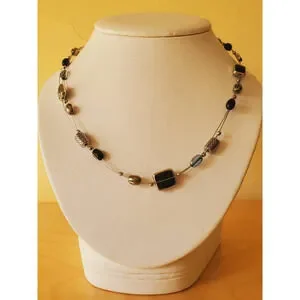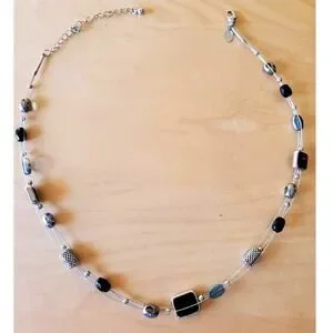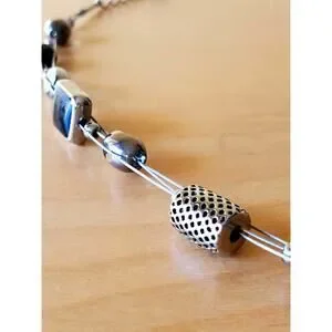 Lia Sophia Multi Strand Tiered Beaded Necklace Black Silver Blue Tone