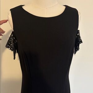 Eliza J black maxi dress featuring elegant beaded cold-shoulder details ✨