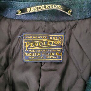 Pendleton Women Wool Coat Shearling Black Blue Shadow Plaid Western Jacket