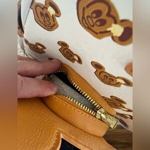 Mickey Waffle Loungefly. Features orange and brown tones. Perfect for Disney fans and Loungefly collectors!